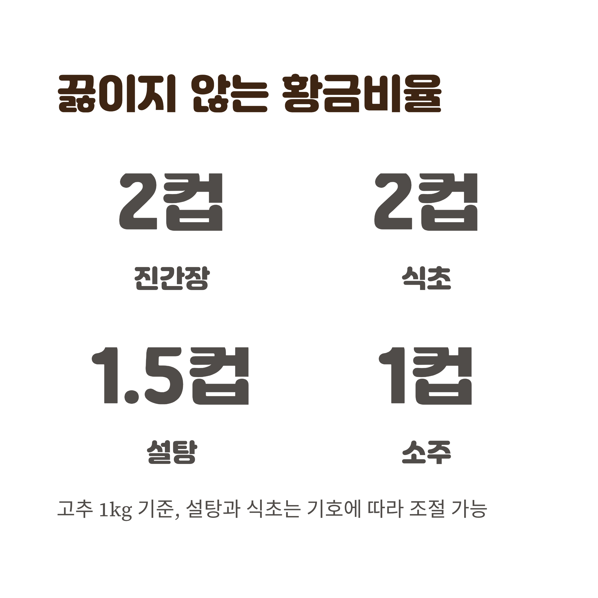 | 재료 | 고추장아찌 간장물 비율 (종이컵 기준) | 역할 |