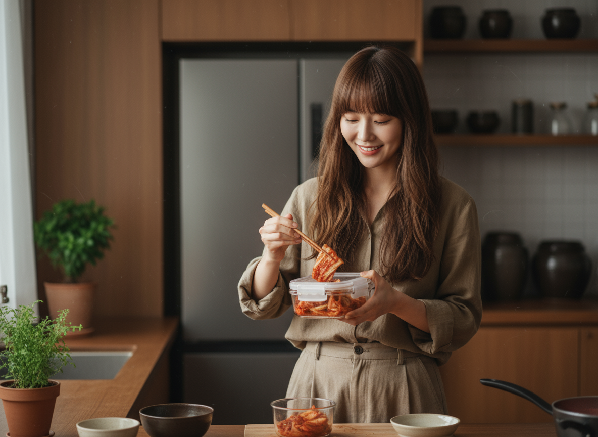 * 보관 팁: 김치통에 70~80% 정도만 채우는 것이 좋습니다. 김치가 익으면서 국물이 생기고 부풀어 오를 수 있기 때문이에요.